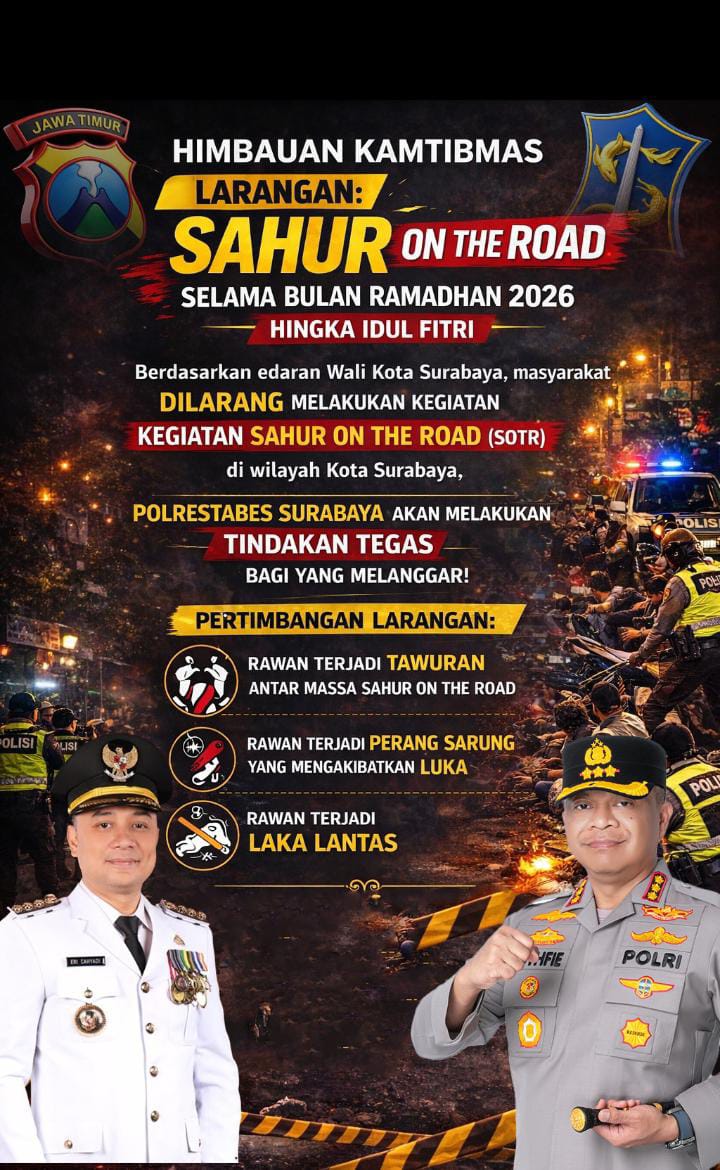 IBN.com. SURABAYA – Upaya menjaga ketertiban dan keamanan wilayah di bulan suci Ramadan kembali ditegaskan Polrestabes Surabaya Polda Jawa Timur dan jajarannya. Kali ini melalui Polsek Pakal mengungkap peredaran minuman beralkohol tanpa izin di kawasan Lakarsantri Surabaya, Minggu (8/3/26) dini hari sekitar pukul 02.20 WIB. Pengungkapan itu berawal dari laporan masyarakat terkait keributan yang melibatkan […]