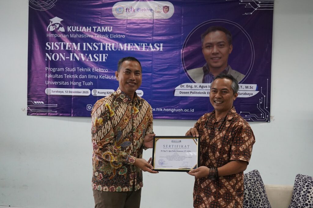 PRI.com-Surabaya, 12 Desember 2025 — Program Studi Teknik Elektro, Fakultas Teknik dan Ilmu Kelautan (FTIK), Universitas Hang Tuah, menyelenggarakan kuliah tamu bertema “Sistem Instrumentasi Non-Invasif” pada Jumat (12/12/2025) di Gedung Selaru Universitas Hang Tuah.