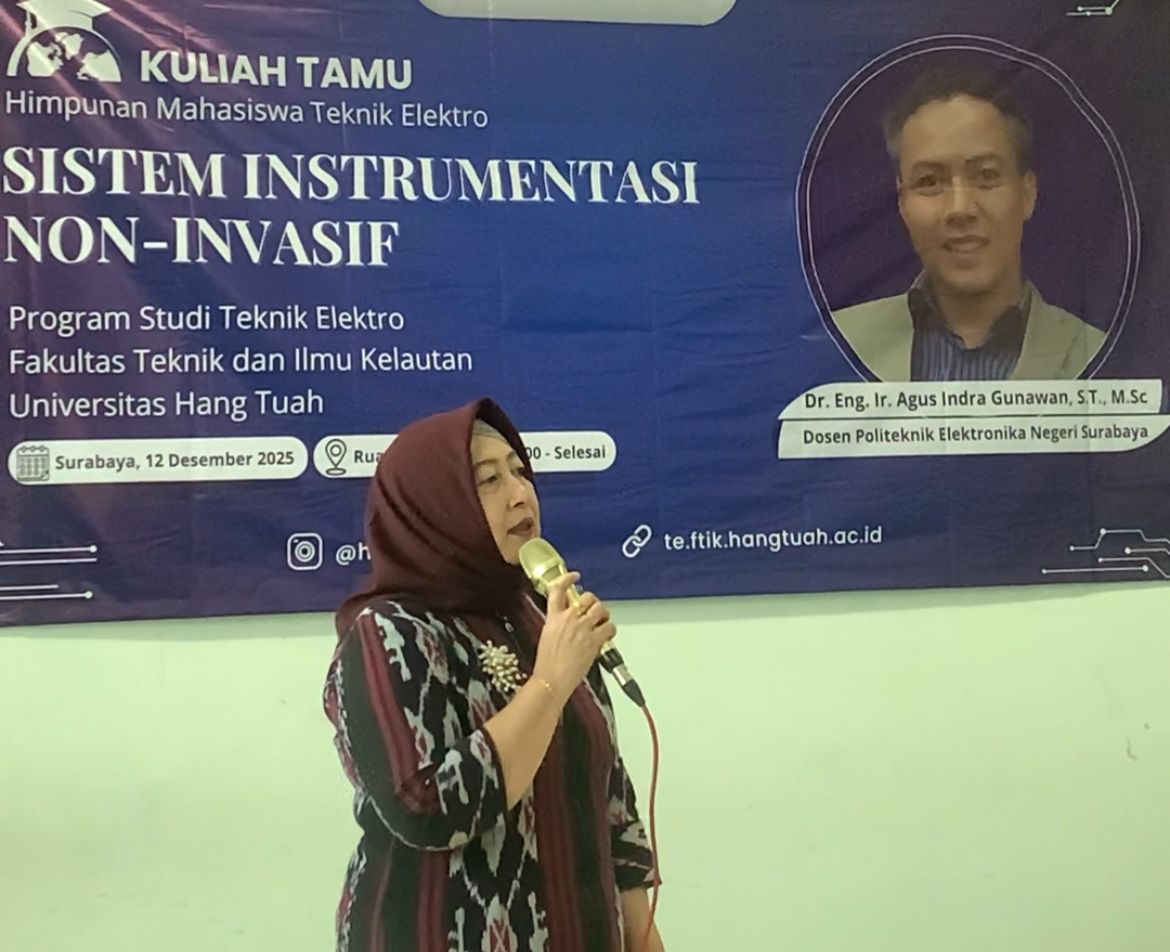 PRI.com-Surabaya, 12 Desember 2025 — Program Studi Teknik Elektro, Fakultas Teknik dan Ilmu Kelautan (FTIK), Universitas Hang Tuah, menyelenggarakan kuliah tamu bertema “Sistem Instrumentasi Non-Invasif” pada Jumat (12/12/2025) di Gedung Selaru Universitas Hang Tuah.