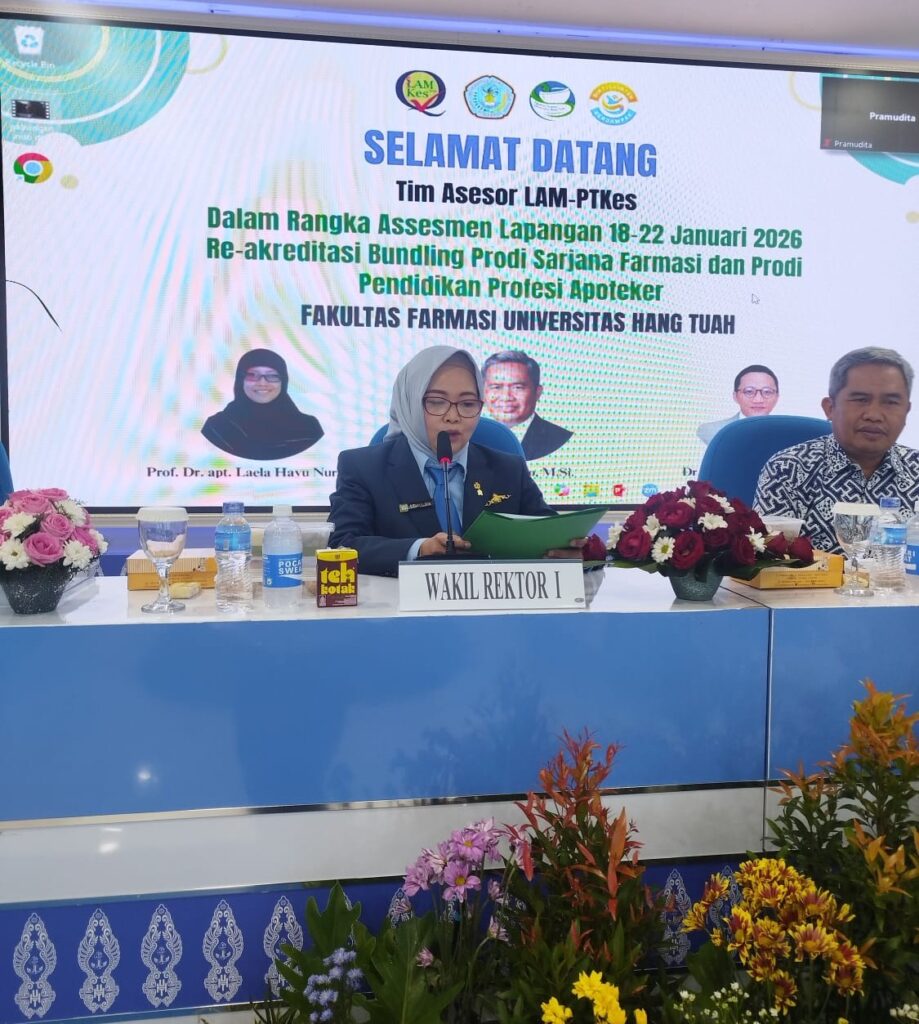 IBN-Surabaya, 19 Januari 2026 – Fakultas Farmasi Universitas Hang Tuah (UHT) melaksanakan kegiatan Re-Akreditasi Bundling Program Studi Sarjana Farmasi dan Program Studi Pendidikan Profesi Apoteker yang berlangsung di Gedung Pascasarjana Universitas Hang Tuah, Senin (19/1/2026).