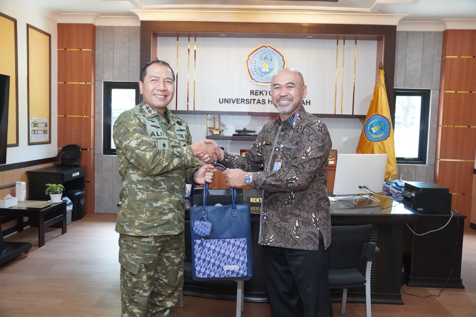IBN.com – Surabaya – Rektor Universitas Hang Tuah (UHT) Laksamana Muda (Purn) Dr. Ir. Avando Bastari, M.Phil., M.Tr.Opsla., IPM., ASEAN Eng., menerima kunjungan silaturahmi Panglima Komando Armada II (Pangkoarmada II) Laksamana Muda (Laksda) TNI I G. P. Alit Jaya, S.H., M.Si., di Kampus Universitas Hang Tuah, Surabaya.