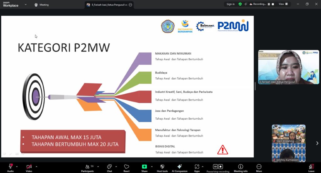 Acara dihadiri oleh Wakil Dekan Bidang Kemahasiswaan, calon dosen pendamping P2MW, serta mahasiswa. Dalam sosialisasi tersebut, peserta mendapatkan pemahaman mendalam mengenai mekanisme pelaksanaan P2MW 2026, mulai dari tahapan seleksi, timeline kegiatan, kriteria penilaian, hingga strategi peningkatan kualitas proposal dan kesiapan usaha mahasiswa.